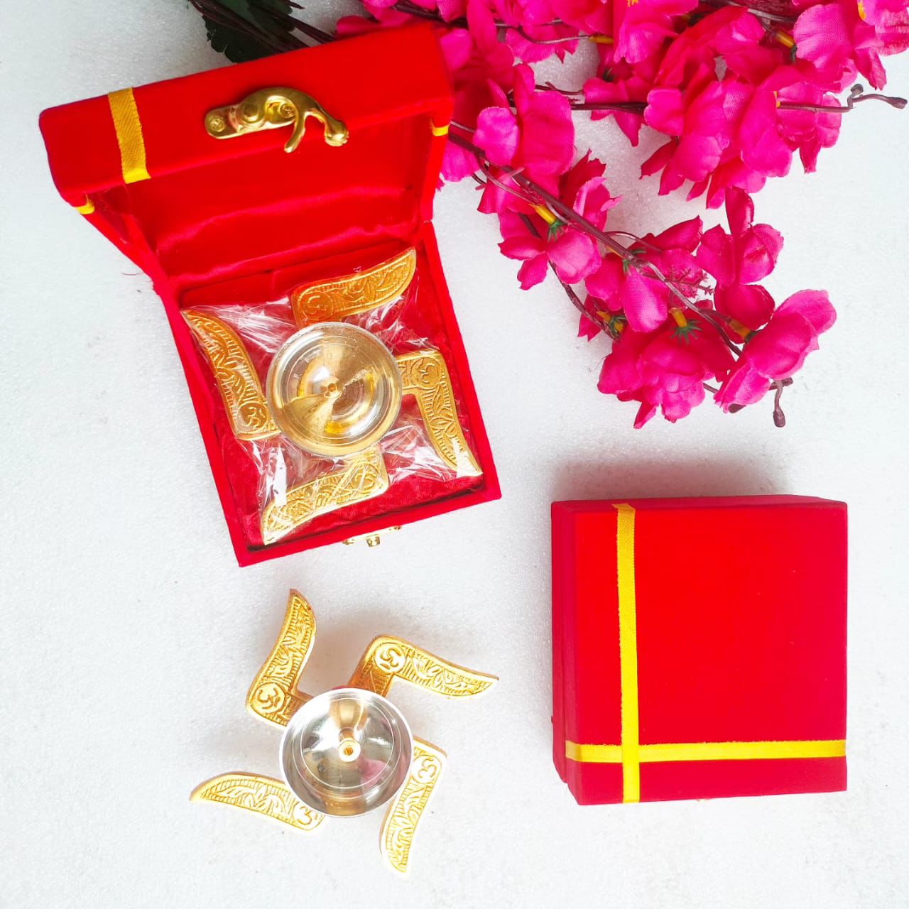 Enhance your Diwali celebrations with our Deepawali hamper -05. This beautifully decorated box includes assorted candles, diyas, sweets, and traditional symbols like swastik and shubh labh. Guaranteed to add a festive touch to your home.